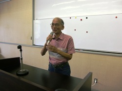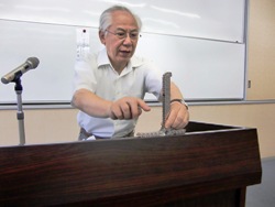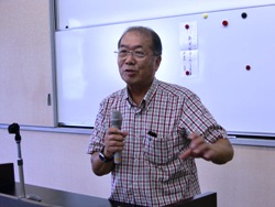 講 演 当会賛助会員:宝角合金㈱技術顧問宝角進氏に竹粉砕機の開発物語をお話いただきました。